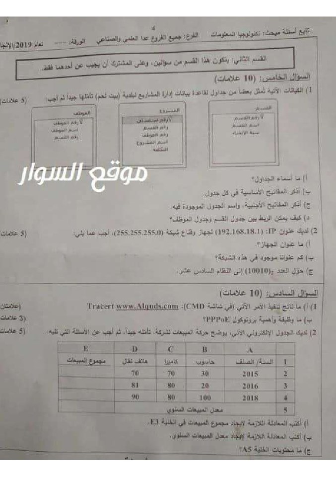 الإجابات النموذجية لامتحان التكنولوجيا 2019 جميع الفروع عدا العلمي والصناعي 1to4