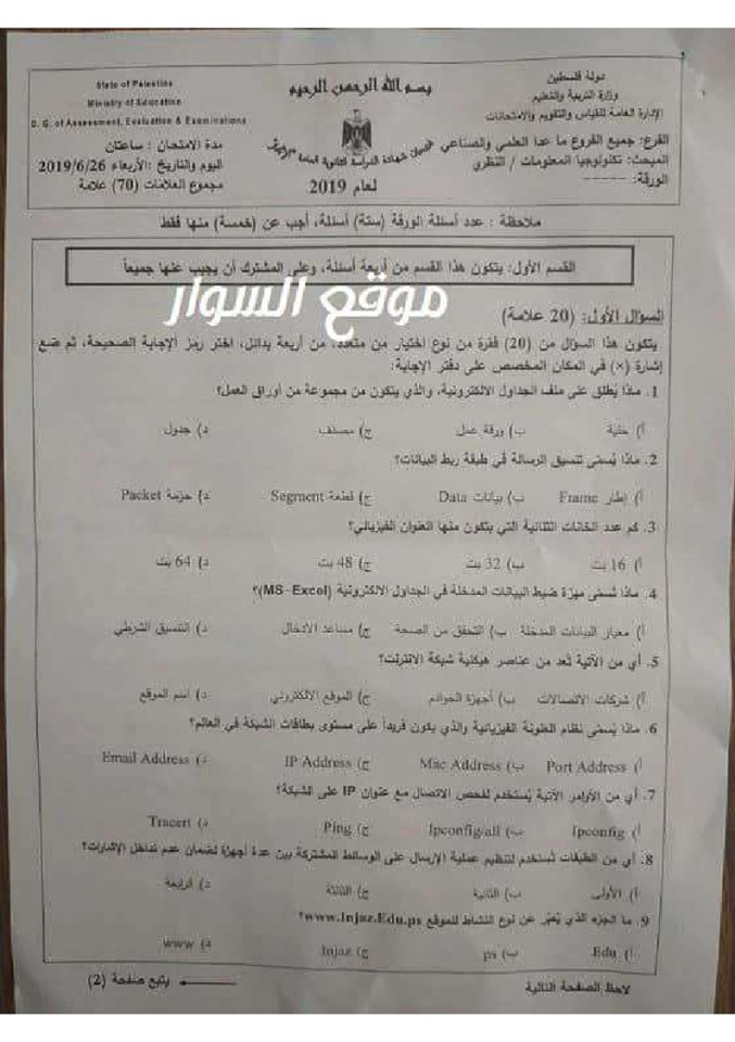 اجابات امتحان التكنولوجيا الانجاز لجميع الفروع عدا العلمي والصناعي 26 6 2019 توجيهي فلسطين المنهاج الفلسطيني الجديد