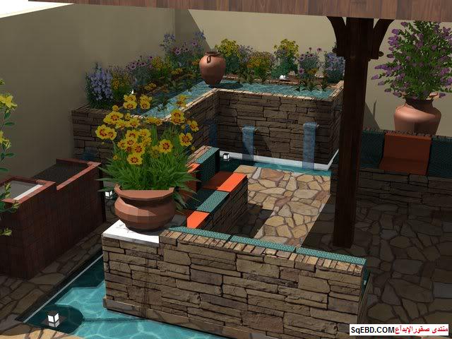جلسات خارجية للحدائق احواض زراعه و ديكورات حجرية لحديقة منزلك صقور الإبدآع