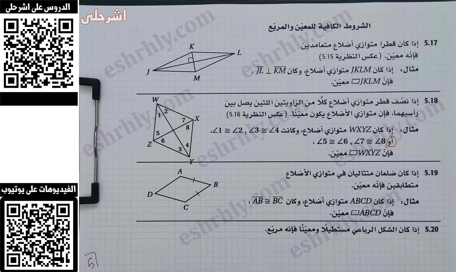 المعين والمربع اول ثانوي الفصل الدراسي الثاني رياضيات 2 المستوى الثاني الدرس 5 1 Eshrhly اشرحلي