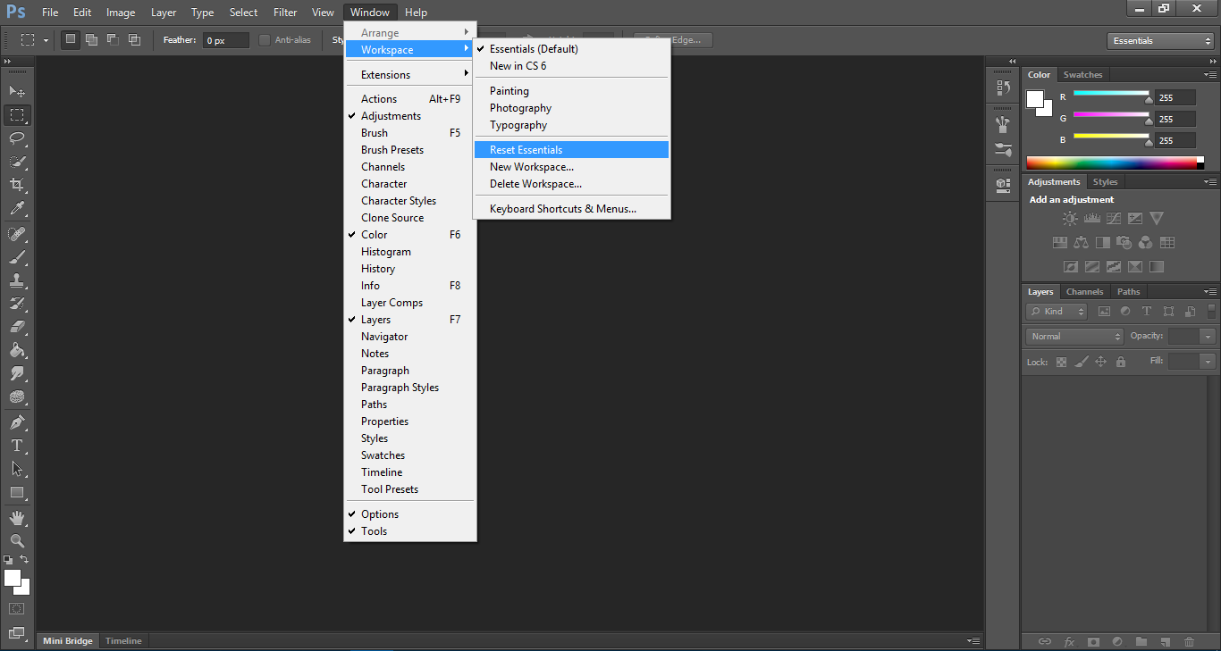 كيفية إعادة تعيين مظهر Adobe Photoshop إلى الوضع الافتراضي