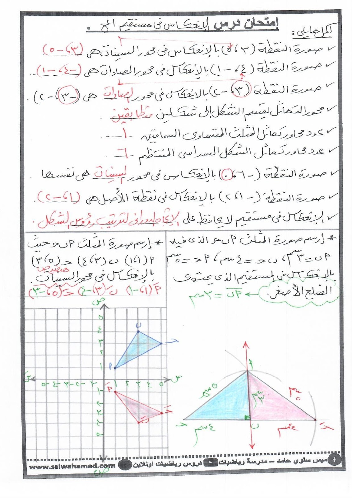 رسم انعكاس حول محور محمد مصطفى الانعكاس رياضيات الفصل الأول ثاني متوسط المنهج السعودي