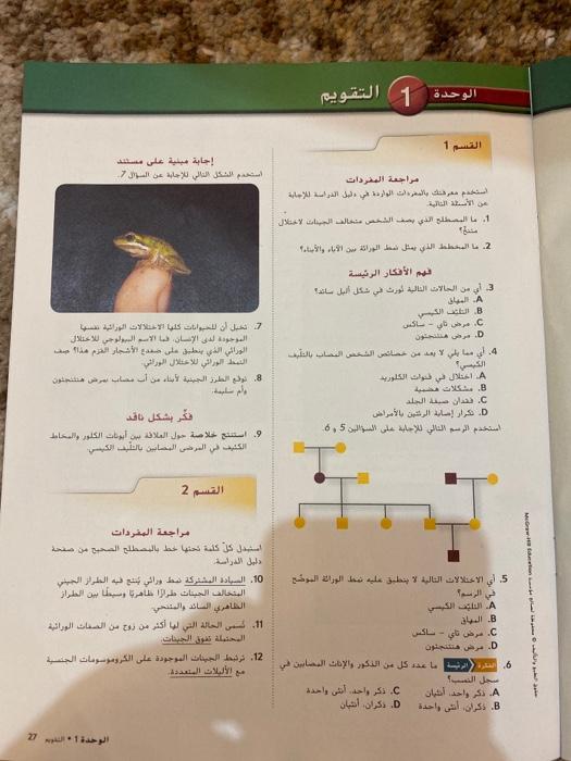 اختبار مقنن على الفصل الأول الأسماك والبرمائيات ص 39 المصدر السعودي