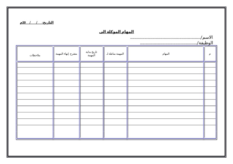نموذج متابعة الاعمال اليومية