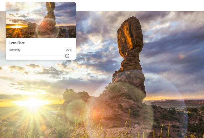 تأثيرات صورة توهج العدسة عبر الإنترنت مجان ا Adobe Photoshop Express