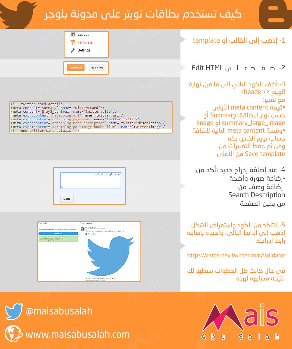 كيف تستخدم بطاقات تويتر على مدونة بلوجر انفوجرافيك
