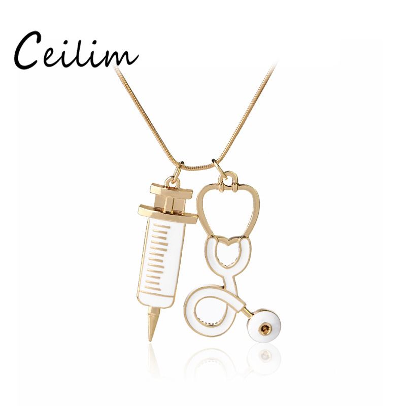 2018 الأزياء والمجوهرات السماعة الطبية حقنة قلادة سحر قلادة للنساء الأفعى سلسلة طبيب ممرضات الطب مدرسة التخرج هدية 2021 من Xiteng2017 3 52ر س موبايل Dhgate