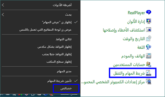 كيفية تحديد الأيقونات التي تظهر على شريط المهام في وندوز10 Windows