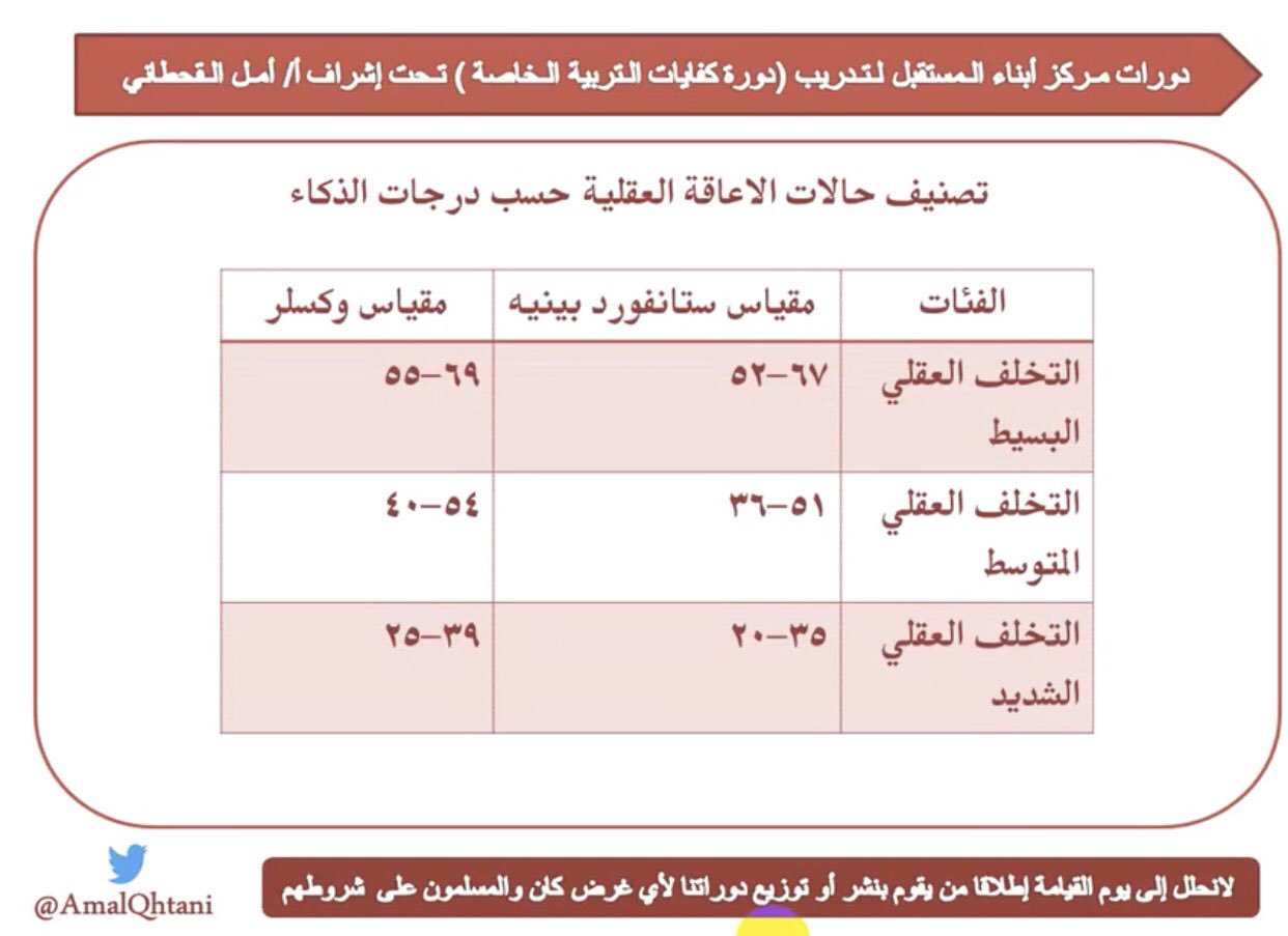 أ ملاك تربية خاصة Twitter પર تصنيف الاعاقة العقلية حسب نسب الذكاء الاعاقة العقلية البسيطة ٥٥ ٧٠ الاعاقة العقلية المتوسطة ٤٠ ٥٥ الاعاقة العقلية الشديدة ٤٠ فأقل Https T Co Xf0tpil0m7
