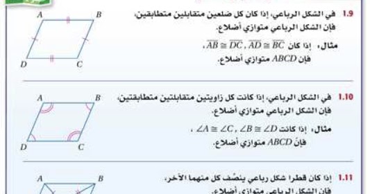 ا ثبات ان شكل رباعيا يمثل متوازي اضلاع
