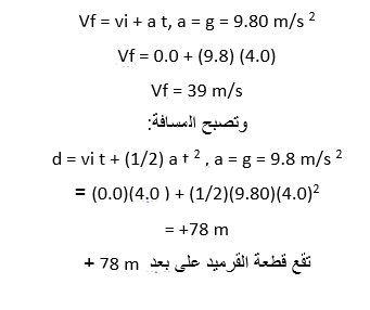 حل المسائل التدريبية لدرس السقوط الحر الحركة المتسارعة العلم نور